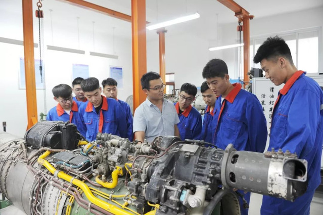 飞行器适航技术专业学生在航空动力系统实验室上课