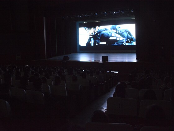 晚上七时,各二级学院学生来到千人礼堂就坐,在荧幕上播放国防教育宣传片中,军人的铮铮铁骨感染着每一位同学。随即,全场肃然,同学们开始观看影片《红海行动》。电影中,中国军人与海盗的战斗,震撼的场面牵动着在场每一个学生的心。从中国海军火速撤侨,到蛟龙突击队不惧困难,不畏牺牲,英勇奋战,影片的每一刻都将中国军人的力量与责任展现得淋漓尽致。同时,影片凸显了中国军人坚韧不拔、铁血刚毅的内心和信念,让每位学生都对中国国防有了更深刻的理解。