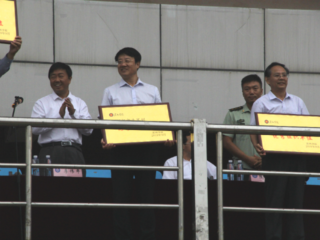 6399月12日,我校2019级新生军训汇报表演暨总结表彰大会在田径运动场隆重举行。党委副书记、校长李长海,党委副书记宋淑平,党委委员、副校长胡波、李伟年、杨玉森出席大会。各二级学院党总支书记、副书记,有关部门主要负责人,全体辅导员、2019级全体学生以及军训教官参加了大会。