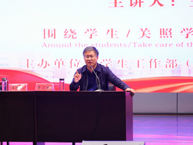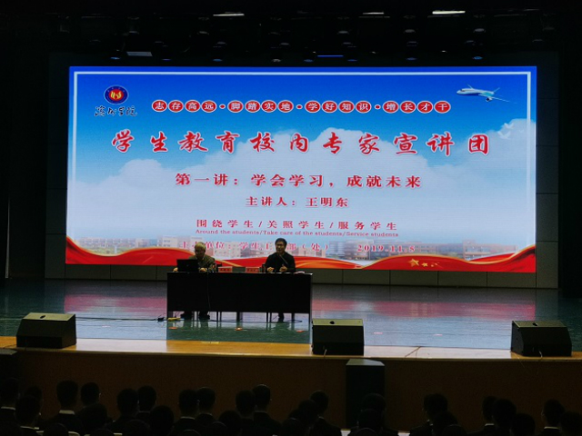 讲座由滨州学院学生工作处处长贾卫东主持,首先,贾卫东化用孟子的“人生三乐”典故详细介绍了主讲人王明东教授,会场内掌声热烈,同学们对讲座内容充满期待。随后,王明东结合自己三十余年的高校教学经验,告诉同学们如何把握机会,在高校努力学习,大学这一特殊时期处于校园与社会的过渡阶段,也是由他律转为自律的阶段,并强调学生要热爱学习,积极向上,严格要求自己,由“要我学”变为“我要学”。王明东结合自身经历勉励同学们要珍惜青春时光,用努力和奋斗充实青春。同时王明东指出学习要有目标、有计划的进行,切不可盲干、蛮干。最后,贾卫东就讲座做出总结,他鼓励同学们珍惜青春,用奋斗的青春,成就辉煌的未来。