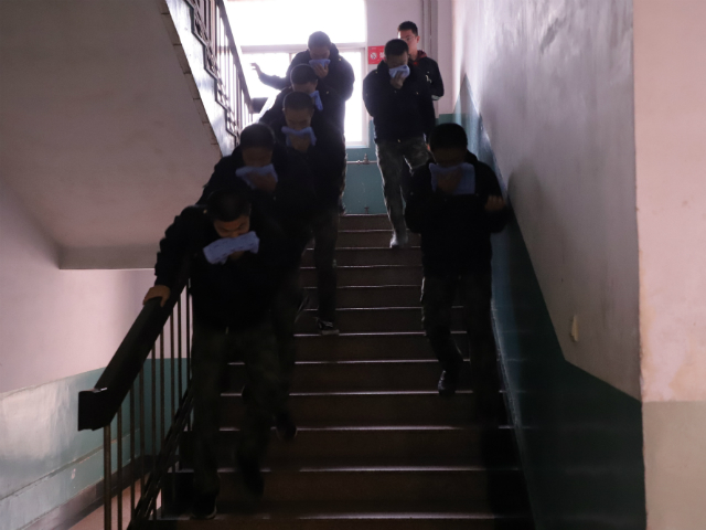 此次活动分为火灾撤离演练和消防安全知识普及两大环节。首先,由学生会生卫部成员发出火警信号,宿舍内的飞行学员听到信号后立即用湿毛巾捂住口鼻,迅速撤离。大家分两列有序撤离,一列扶楼梯扶手,一列靠墙,行动迅速、井然有序。从发出信号到在楼下集合完毕仅用了30秒时间。随后,学生会生卫部成员对飞行学员们在撤离演练时的优秀表现予以赞扬,希望大家能在危急之时依然能安全、有序的撤离。最后,学生会生卫部成员向大家强调“务必用湿毛巾捂住口鼻”、“严禁从阳台跳下”等注意事项,同时向大家解读15号公寓楼火灾撤离路线图并普及冬季宿舍消防安全知识。