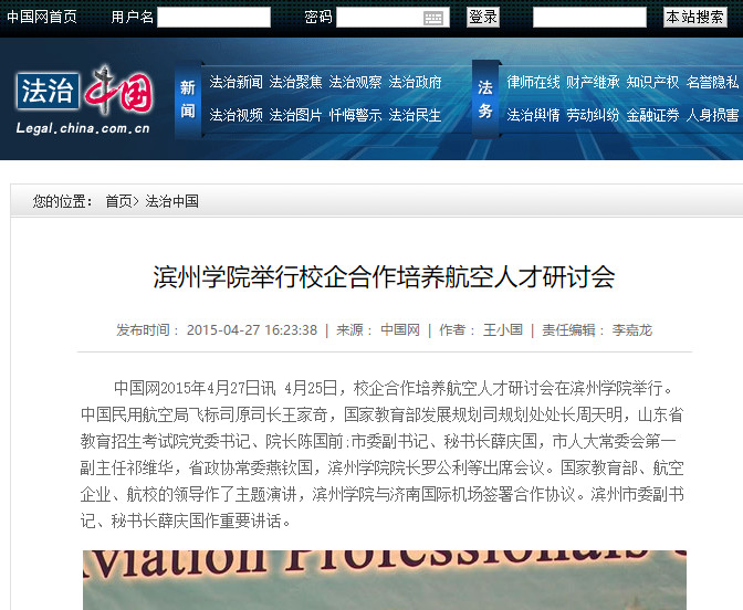[《中国网》]滨州学院举行校企合作培养航空人才研讨会