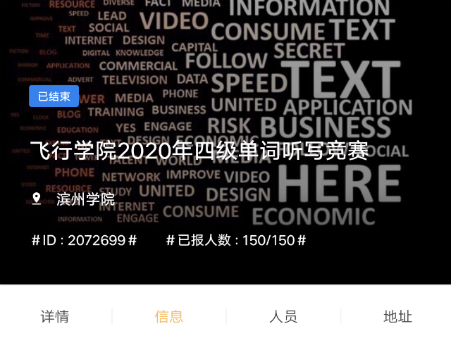 478为激发学生学习英语的兴趣,丰富学生词汇量,帮助同学们更好的备战四级考试,6月5日至6月7日,365上市公司2020年四级单词听写竞赛在线上举行。本次大赛的活动对象以365上市公司未通过四级考试的大一学子为主,大二学子也积极参与其中。