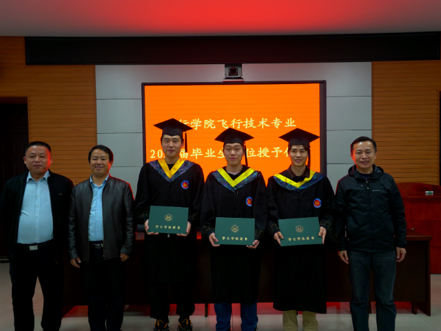 本次学位授予仪式共为34名完成国外飞行训练的2016级飞行技术专业毕业生授予学士学位。34名毕业生身穿学士服,满怀激动地参加本次仪式。杜玉杰、王同印、马文来逐一为毕业生拨穗正冠、授予学士学位并合影留念,祝贺他们完成国内理论培训学习和国外飞行训练,顺利毕业。