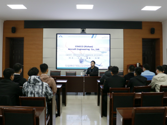 会议伊始,卢鹏飞介绍了日照山太飞机工程股份有限公司的基本概况、工作团队、运营模式及员工工作生活环境等。卢鹏飞表示,日照山太飞机工程股份有限公司发展潜力巨大,能够为大家提供更好的工作前景、工作岗位与就业优势。卢鹏飞还为学生分析了当前的形势,岗位发展方向;讲解了相关的技术知识,帮助学生进行自我定位;提出了公司的招聘要求,介绍了工作的薪资福利;向学生讲述了公司的日常工作、生活情况。卢鹏飞与学生进行沟通互动,参会学生踊跃提出自己所关心的问题,卢鹏飞一一详细解答,并鼓励学生们勇于发掘自己的价值,祝愿学生们在工作岗位上有更好的发展前景。会议最后,有意愿的学生积极向日照山太飞机工程股份有限公司报名应聘。