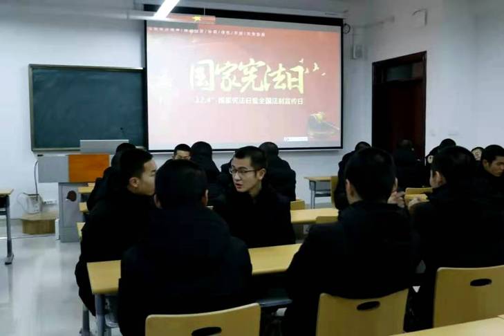 班会伊始,同学们共同学习了宪法的历史沿革、修改宪法的意义、宪法的基本内容和原则,国家宪法日的由来等内容;观看了宪法宣讲短视频;号召同学们积极参加宪法知识竞赛。班会结束后,同学们就宪法与日常学习生活的紧密关系展开讨论:“通过此次主题班会,让大家明白了宪法在日常生活中的重要地位,在以后的生活中进一步的履行宪法赋予的权利和义务,维护宪法尊严。”