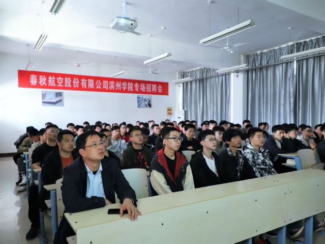 李帅致辞,表达对春秋航空股份有限公司到来的欢迎和进一步加强合作的殷切期盼。此次招聘会面向2022届毕业生,招聘岗位以航空维修工程师学员为主。张军平从公司信息、公司发展、个人发展等方面进行概述,围绕责任荣誉、科学规范、严谨笃行、高效和谐、创新起源的机务理念进行详细讲解。详细介绍了公司对于学员的培训方案和要求。现场同学积极互动,提问相关专业问题,张军平为其一一解答。