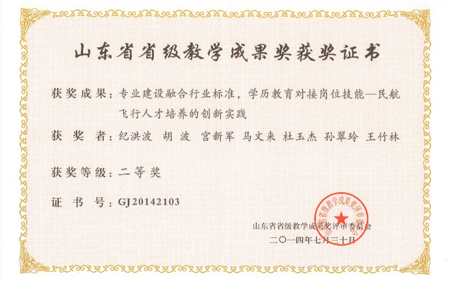 学院现有飞行技术(驾驶)、飞行技术(通航)、交通运输(民航机务工程)、交通运输(空管与签派)、飞行器适航技术5个本科专业(方向)。飞行技术专业填补了山东省高校民航类专业空白,现为国家级综合改革试点专业、山东省特色专业、山东省一流本科专业、山东省卓工教育培养计划试点专业,飞行技术专业群获批为山东省高水平应用型立项建设专业群。建有山东省高等学校民用航空技术应用型人才培养模式创新实验区,先后与国航、山航、川航、春秋航空等22家航空公司联合培养民航飞行员,已培养飞行员2600余名,其中近600人已经成长为机长、机长教员。近年来,共承担国家级质量工程项目3项、省部级14项、校级52项,出版教材、专著24部,与沈阳航空航天大学联合牵头国内15所高校航校编写的全国飞行技术专业系列教材已经出版发行。承担国家级新工科研究与实践项目1项、国家级一流本科课程1门、省级一流本科课程3门,教育教学成果获山东省高等教育教学成果一等奖1项、二等奖1项,中国自动化学会高等教育教学成果二等奖1项。