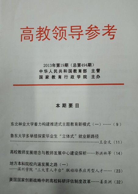 [《高教领导参考》] 地方本科院校内涵发展之路(一)——滨州学院“三大育人平台”联动培育应用型人才