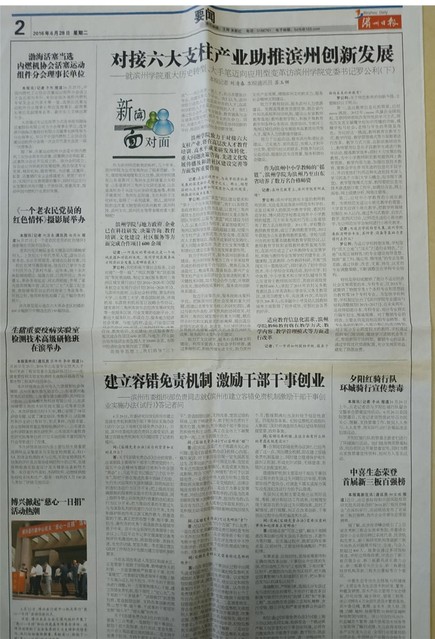 [《滨州日报》] 对接六大支柱产业助推滨州创新发展