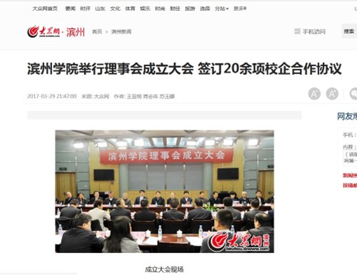 [《大众网》] 滨州学院理事会成立大会 签订20余项校企合作协议