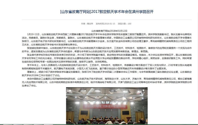 [山东省教育厅网] 2017航空航天学术年会在滨州学院召开