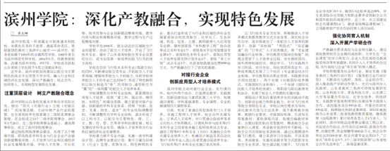 [《大众日报》] 滨州学院:深化产教融合,实现特色发展