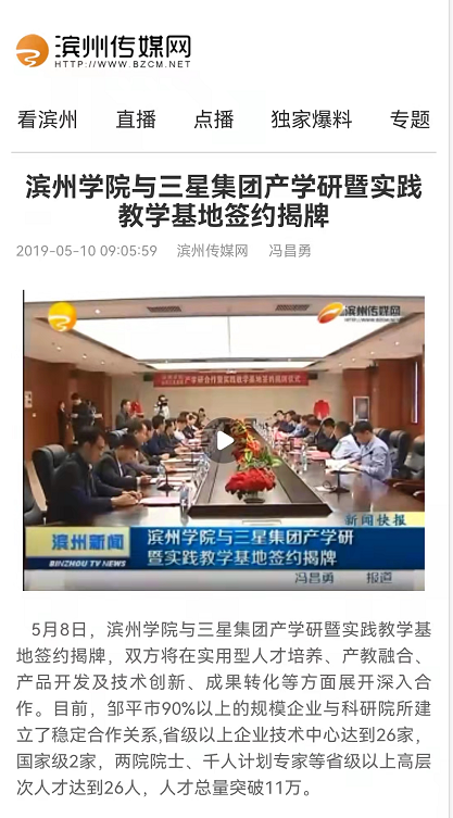 [滨州传媒网] 滨州学院与三星集团产学研暨实践教学基地签约揭牌