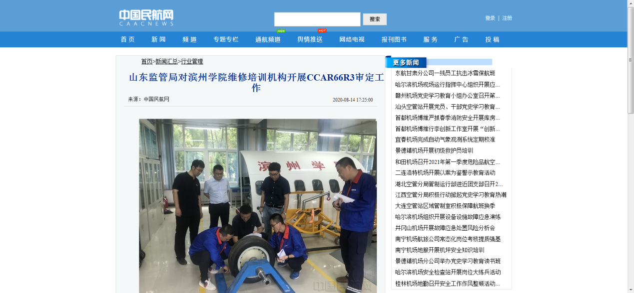 [中国民航网] 山东监管局对滨州学院维修培训机构开展CCAR66R3审定工作