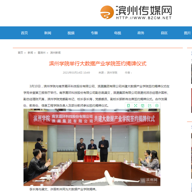 [滨州传媒网] 滨州学院举行大数据产业学院签约揭牌仪式
