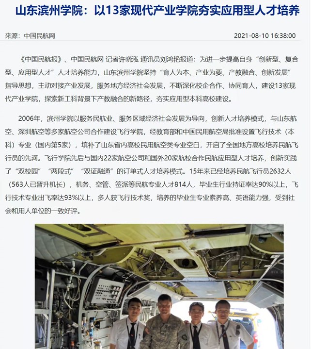 [中国民航网] 山东滨州学院:以13家现代产业学院夯实应用型人才培养