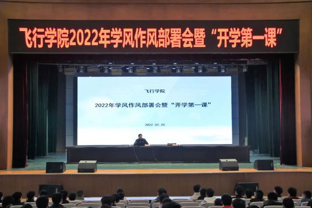 李帅就上学期学生学风作风建设问题做出总结并对本学期提出要求,他围绕“青春心向党,喜迎二十大”、“家国天下,爱国如家”、“众志成城,共抗疫情”、“学习全国民航工作会议精神”四个方面做出详细讲解。他指出,要以冬奥精神和女足精神为切入点,努力培养坚韧顽强、不屈不挠、敢打敢拼的冬奥精神和不畏逆境、顽强拼搏、永不言败的女足精神,希望同学们学在校园、用在社会,用拼搏与奋斗实现自我价值,用努力与汗水实现青春梦想。