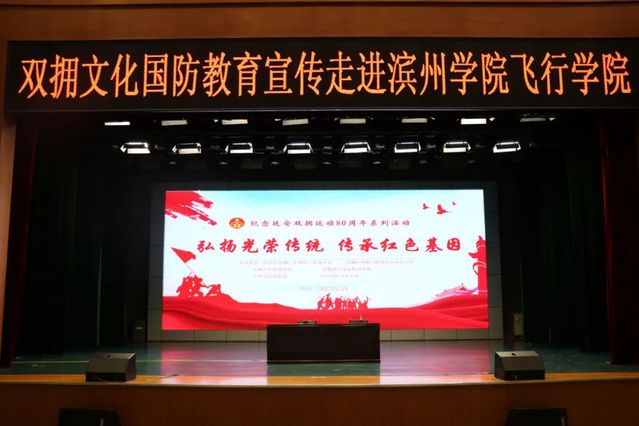 2023年2月28日下午,“纪念延安双拥运动80周年——弘扬光荣传统 传承红色基因”双拥文化国防教育宣传进校园主题活动在滨州学院礼堂隆重举办。