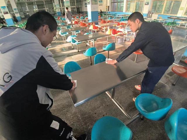 在提前熟悉餐厅环境和工作后,同学们分两个小组进行收盘和擦洗工作,合理分配工作,各成员勤奋踏实、兢兢业业,帮助餐厅人员准备饭菜,认真地打扫餐厅的卫生,提前准备餐盘、筷子,在窗口摆放饭菜,为前来就餐的同学们营造出一个良好的就餐环境。劳作过程同学们工作认真,充分展示了他们对劳动的热爱,体现了他们不怕苦、不怕脏、不怕累的精神,让大家充分体验到了“劳动最光荣”的精神。