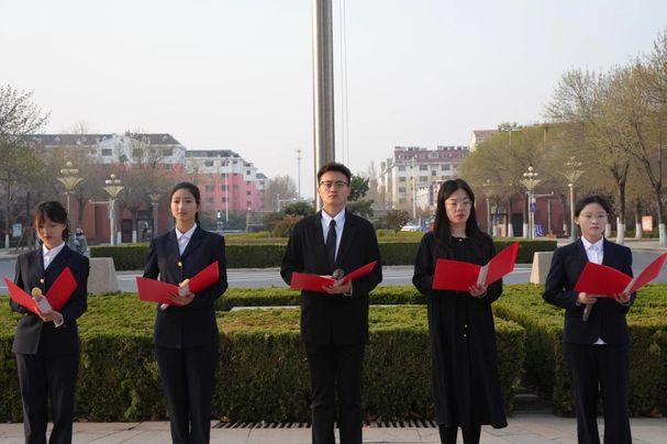 五位师生代表深情献词《英雄》。声情并茂的朗诵让与会师生进一步重温了那段血与火的悲壮历史,将对革命先烈的无限哀思和对国家民族的热爱敬仰表达得淋漓尽致。“这个伟大复兴的时代,一个又一个……响当当的英雄”,铿锵有力诵读声在广场久久回响,更镌刻在每个人的心间。
