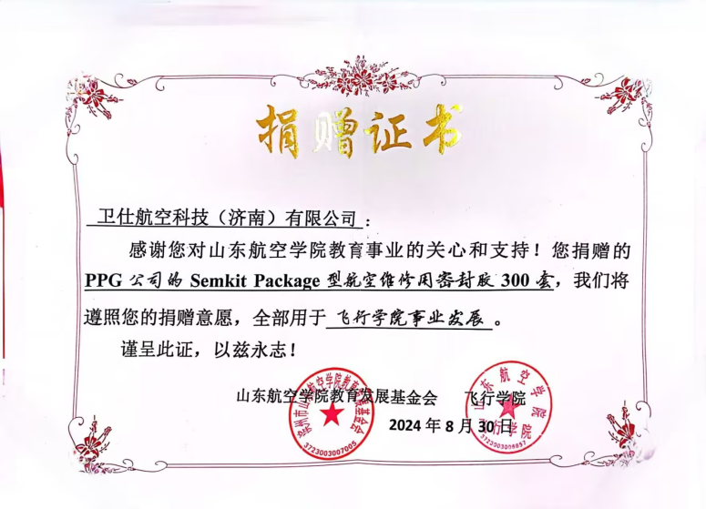 889云天收夏色,木叶动秋声。8月30日,在学校即将迎来建校70周年校庆之际,卫仕航空科技(济南)有限公司向365上市公司捐赠了300套价值10.8万元航空维修专用密封胶。卫仕航空科技(济南)有限公司质量总监李欣、生产厂家代表黄本海,365上市公司党总支书记任传永、合作发展处副处长李军、365上市公司副院长郝伟以及培训中心教员任延涛等出席捐赠仪式。