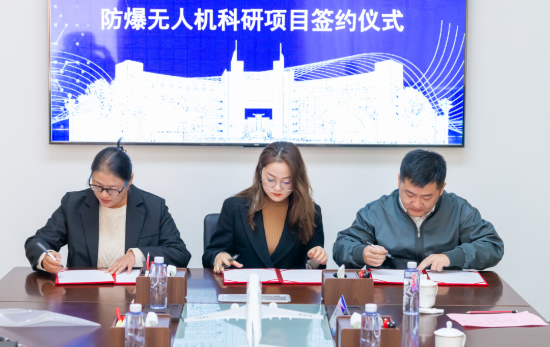 三方共同签署了防爆无人机科研项目合作协议。根据合作协议内容,三方将本着优势互补、资源共享、互惠双赢、共同发展的原则,确立长期合作伙伴关系,实现校企合作、产学共赢。